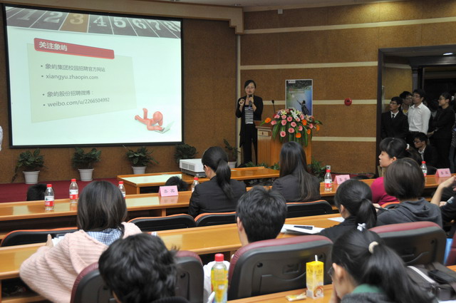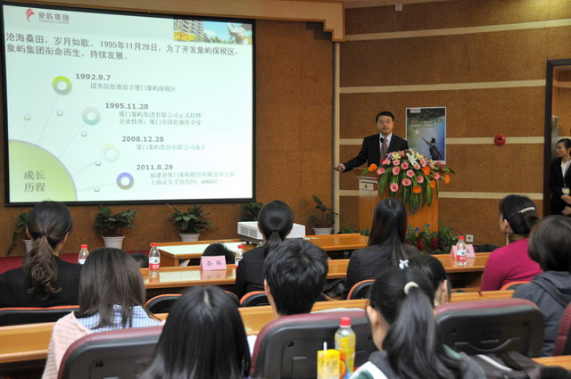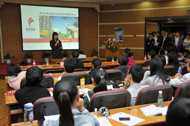 2012年象嶼集團(tuán)全國校園招聘首場宣講會(huì)于11月23日晚在廈門大學(xué)拉開帷幕。集團(tuán)人力資源總監(jiān)林志勇、象嶼股份人力資源部經(jīng)理林焱為同學(xué)們進(jìn)行了精彩的宣講并回答了同學(xué)們現(xiàn)場的提問,鼓勵(lì)廈大的優(yōu)秀學(xué)子們加入到象嶼的大家庭。據(jù)悉,此次宣講會(huì)吸引了近500位應(yīng)屆生參加,場面火爆,提問環(huán)節(jié)積極踴躍,會(huì)后現(xiàn)場收到簡歷近500 份。