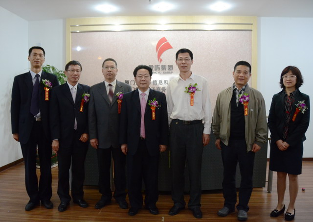 廈門市軟件園管理委員會辦公室常務副主任李永福、中國銀聯(lián)廈門分公司副總經(jīng)理王中和象嶼集團總裁助理廖世澤、象嶼電子商務公司總經(jīng)理林立一起為公司揭牌