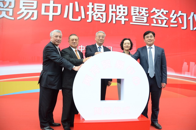 海峽兩岸關(guān)系協(xié)會張銘清副會長、商務(wù)部臺港澳司陳星司長、廈門市人民政府張燦民副市長、臺灣兩岸共同市場基金會詹火生理事長、臺灣工商協(xié)進會駱錦明理事長為兩岸貿(mào)易中心總部揭牌