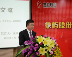 會議最后,張水利董事長發(fā)表了重要講話,肯定了象嶼股份2016年收獲的“三種精神”、“四股力量”,鼓勵大家再接再厲,保持危機意識,堅持業(yè)務(wù)創(chuàng)新,推進組織體系變革,保持象嶼的“草根”精神,不忘初心,穩(wěn)步邁上更高臺階,在新的一年里取得新的成績!