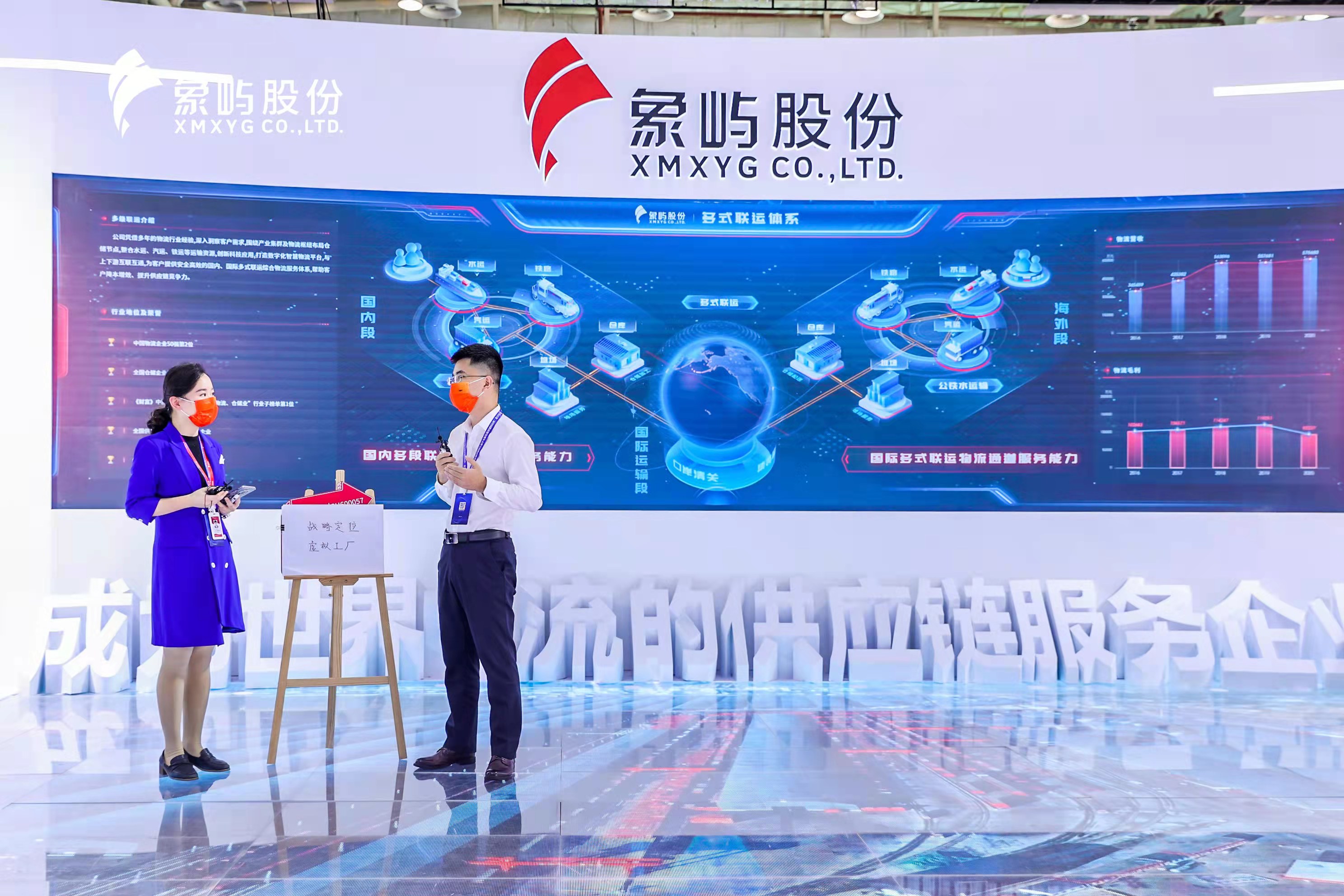 天屏地屏主屏三屏互動, 全景地屏展現(xiàn)了象嶼股份農(nóng)產(chǎn)品、能源化工、金屬礦產(chǎn)供應(yīng)鏈板塊的業(yè)務(wù)亮點,通過東北象嶼糧倉、陜西場站、印尼不銹鋼冶煉項目等典型項目實景展示,進(jìn)一步詮釋象嶼業(yè)務(wù)模式及國際化發(fā)展!