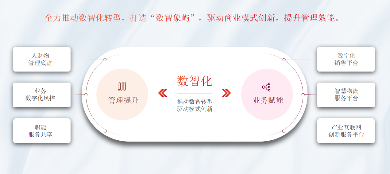 “烏卡時代”指正處于一個易變性、不確定性、復(fù)雜性、模糊性的世界里。從“區(qū)域性供應(yīng)鏈服務(wù)商”一步步成長為“中國領(lǐng)先的供應(yīng)鏈投資運營服務(wù)商”的象嶼股份,堅持以“平臺化、國際化、數(shù)智化”作為主要手段,在烏卡時代積極思變、應(yīng)變,提升供應(yīng)鏈韌性、柔性,實現(xiàn)保鏈、穩(wěn)鏈。